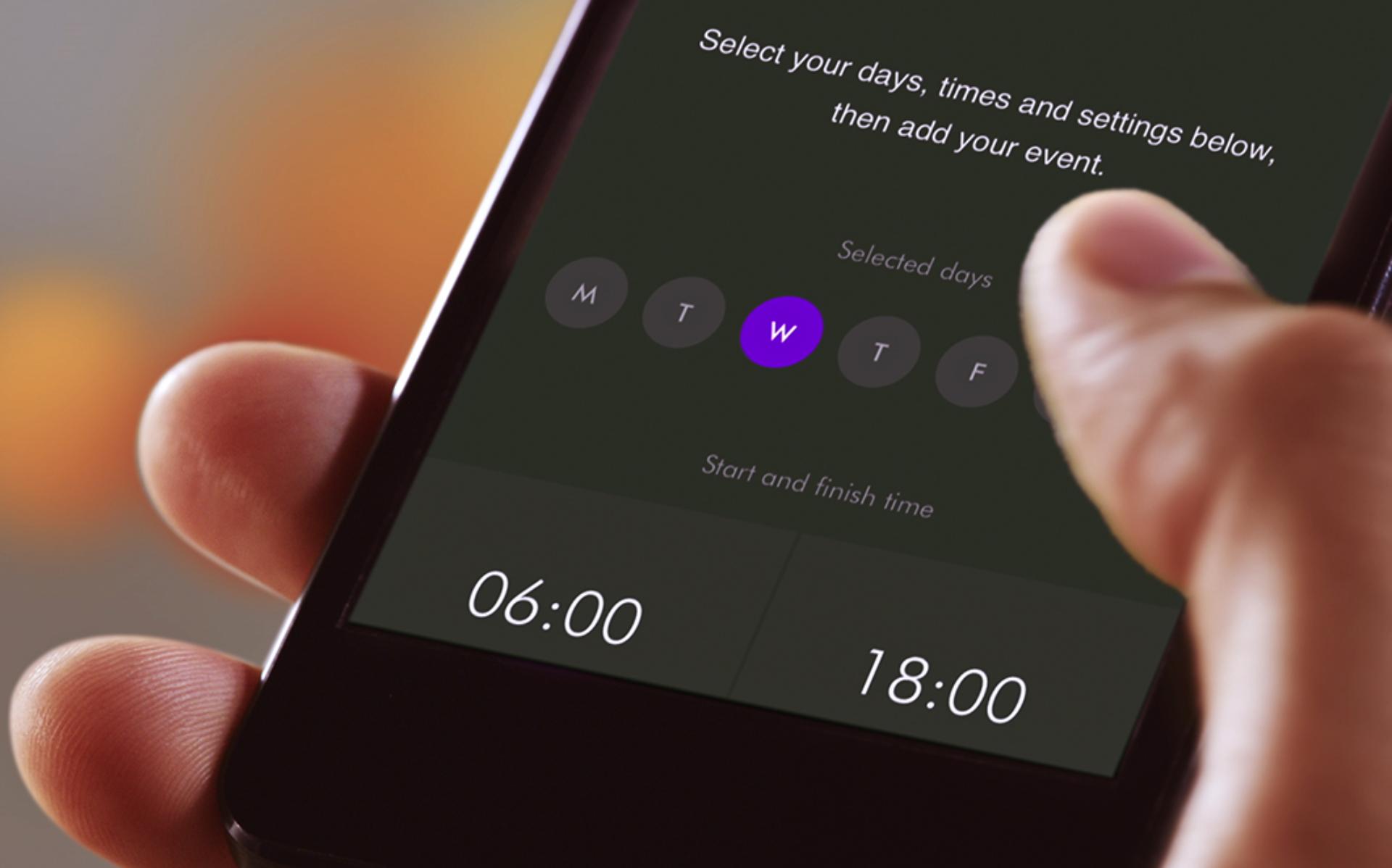 Iestatiet ierīces vēlamo palaides un apturēšanas laiku pat septiņas dienas iepriekš, izmantojot Dyson Link lietotni.